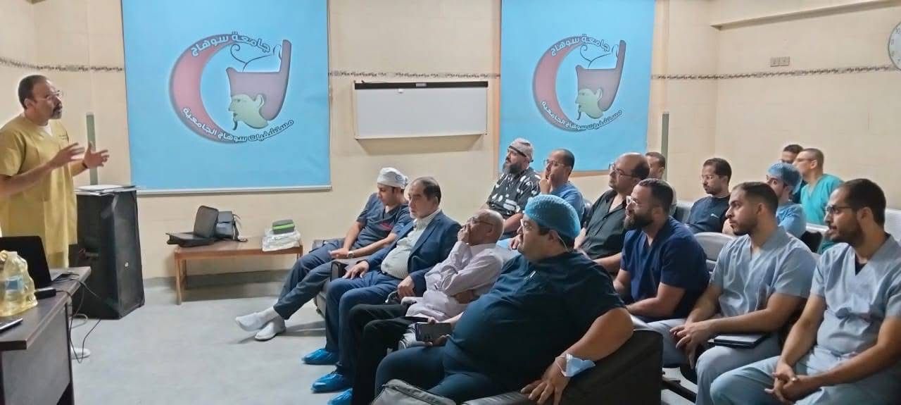نظم قسم جراحة المسالك البولية بمستشفى جامعة سوهاج ورشة العمل الخاصة بجراحات وطرق علاج مجرى البول، تناولت أحدث التقنيات العالمية في علاج ضيق مجرى البول عند الرجال والأطفال، إلى جانب إجراء عدد من العمليات المتقدمة في هذا المجال، مما أسهم في رفع كفاءة الفريق الطبي وتنمية مهارات شباب الأطباء.