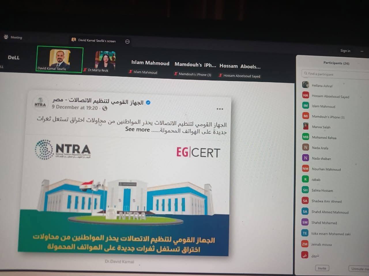 وتأتي هذه الفعالية ضمن جهود كلية الإعلام جامعة بني سويف لتعزيز الوعي الأمني الرقمي لدى الطلاب، ودعم قدراتهم في التعامل مع التهديدات الإلكترونية المتزايدة، بما يسهم في إعداد إعلاميين قادرين على ممارسة دورهم بكفاءة وأمان في العصر الرقمي.