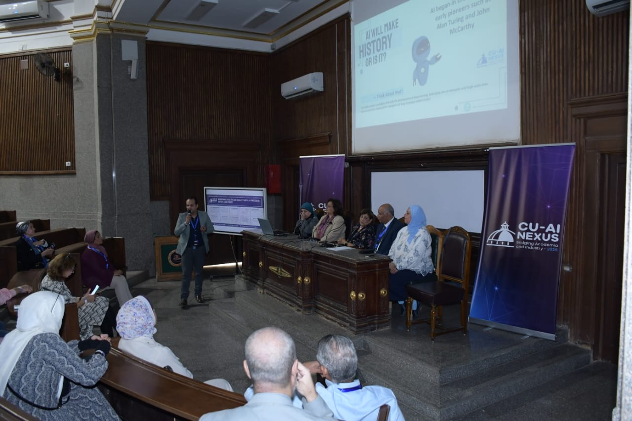 استضافت جامعة القاهرة جلسة علمية متخصصة ضمن فعاليات المؤتمر الدولي الأول للذكاء الاصطناعي، بعنوان “تعريف جودة الرعاية الصحية بالذكاء الاصطناعي: الدقة، الأمان والثقة”، والتي جمعت نخبة من رواد التعليم الطبي والجودة الصحية وأساتذة كلية الطب.