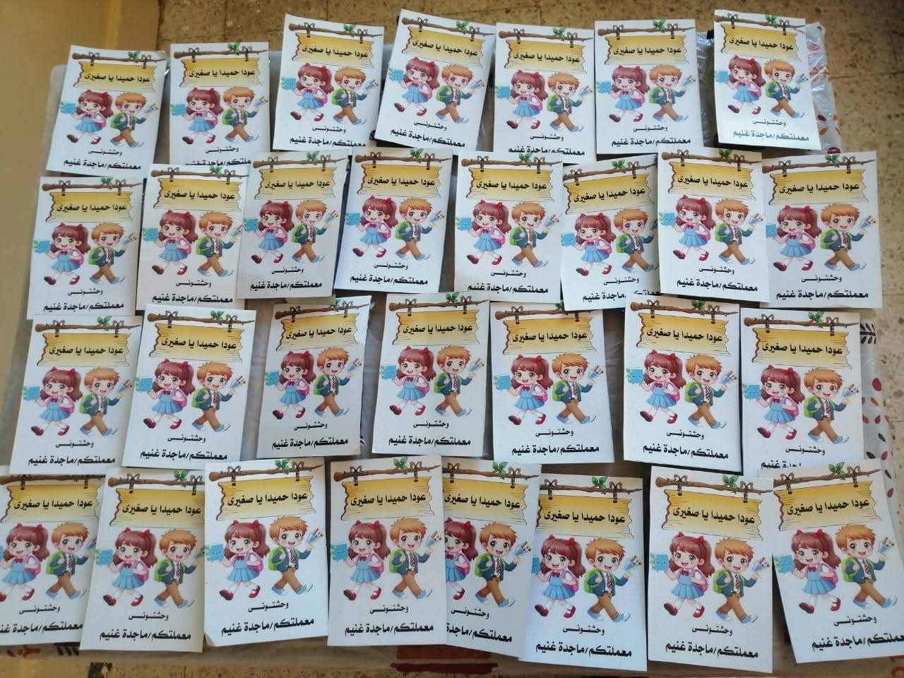 حيث استقبلت معلمة بمدرسة الشهيد محمد مقلد الابتدائية بلاصيفر البلد التابعة لإدارة دسوق التعليمية بمحافظة كفرالشيخ، بالبلالين والهدايا التي تضمنت شيكولاته وحلوى، وكتبت على السبورة «الفصل يتزين لاستقبال أحبائي».