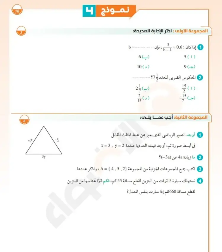 بنك أسئلة في مادة الرياضيات أولى اعدادي 2025 الترم الأول