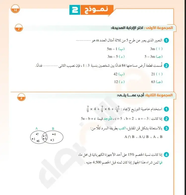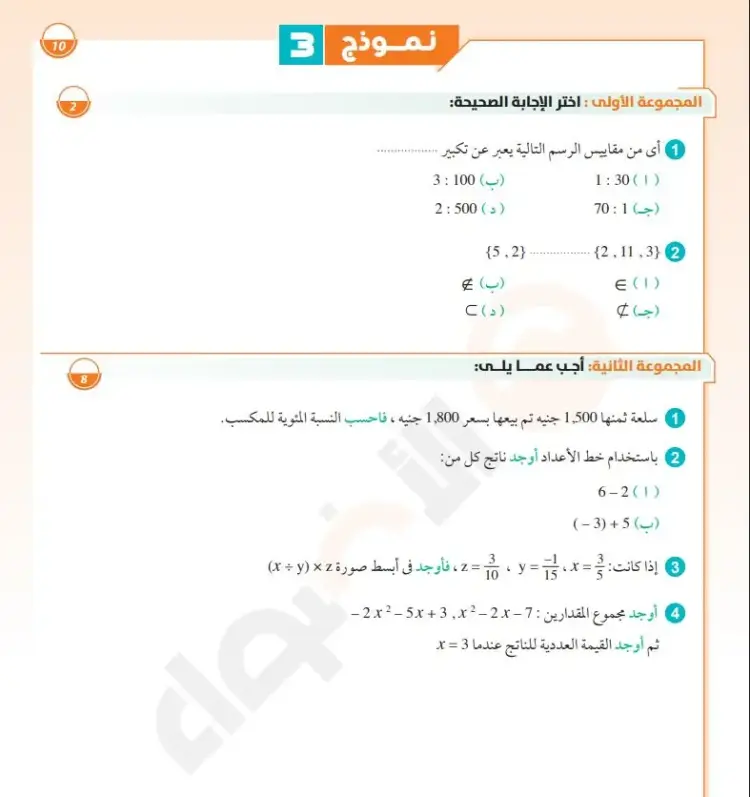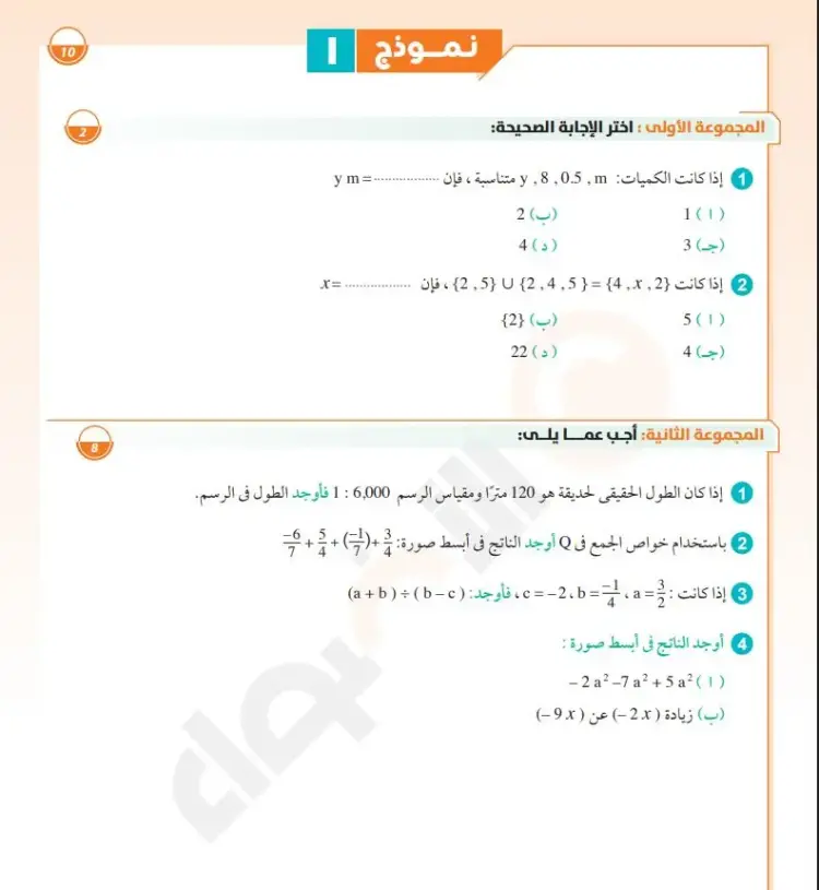 المجموعة الأولى: اختر الإجابة الصحيحة: