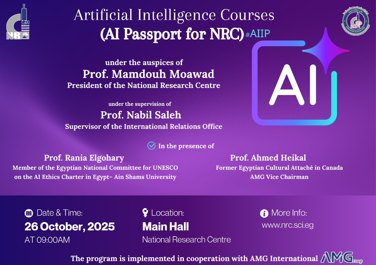 انطلقت فعاليات البرنامج التدريبي الدولي للذكاء الاصطناعي الذي ينظمه مكتب العلاقات الدولية بالمركز القومي للبحوث، بالتعاون مع مجموعة AMG الدولية الرائدة في مجالات التدريب والتحول الرقمي، وذلك في إطار توجيهات الدكتور أيمن عاشور وزير التعليم العالي والبحث العلمي، بتعزيز التحول الرقمي في مؤسسات التعليم العالي والبحث العلمي، وبناء كوادر وطنية قادرة على توظيف التقنيات الحديثة في دعم منظومة البحث والتطوير.