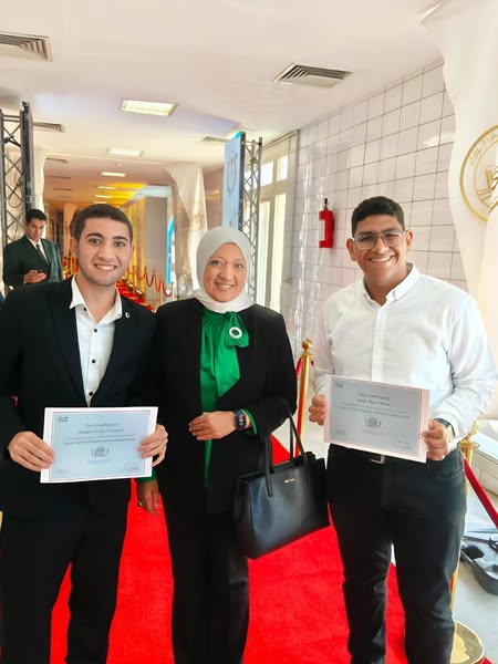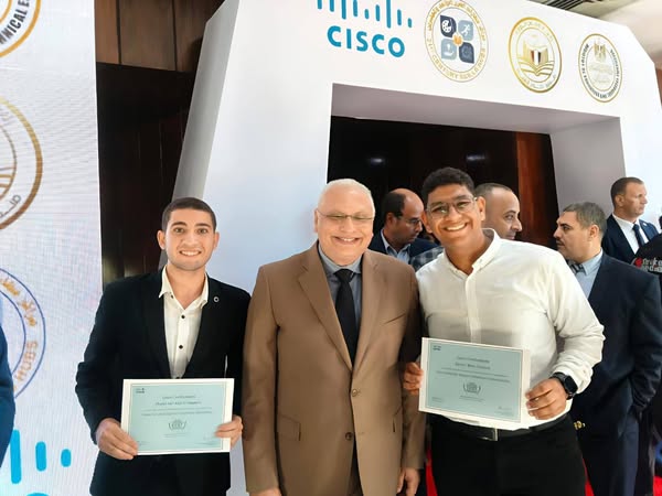 الطلاب محمد أسعد سيد، يوسف محمد أحمد، ومحمد تامر دسوقي من مدرسة NTG2 للتكنولوجيا التطبيقية بمصر الجديدة.