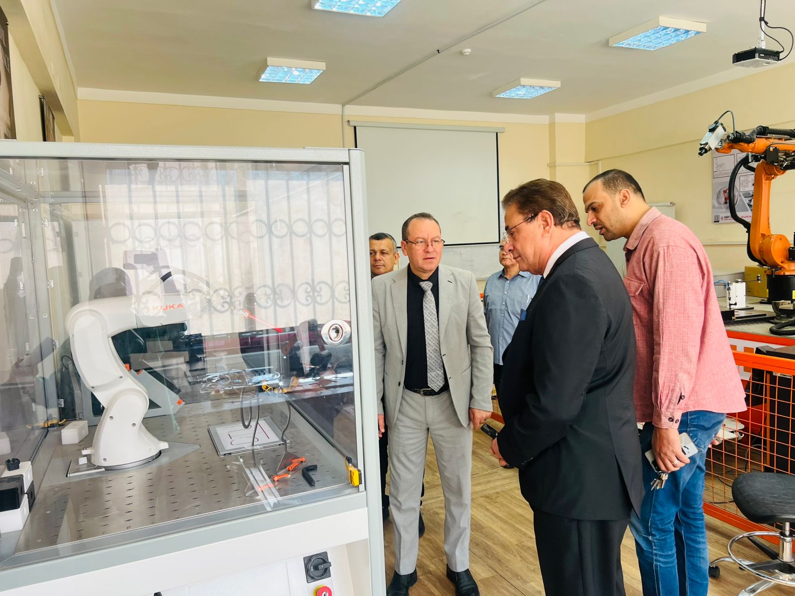 تضمنت الزيارة جولة تفقدية شملت عددًا من المعامل الموجودة بالجامعة، المدرجات، وقاعة الإختبارات الإلكترونية، كان فى استقبالهم الدكتور محمد عزت وكيل الكلية لشئون التعليم والطلاب، والدكتور عمرو عبدالهادي وكيل الكلية لشئون الدراسات العليا والبحوث،والذى اشاد بالتجهيزات والإمكانيات التكنولوجية والتقنية الموجودة.