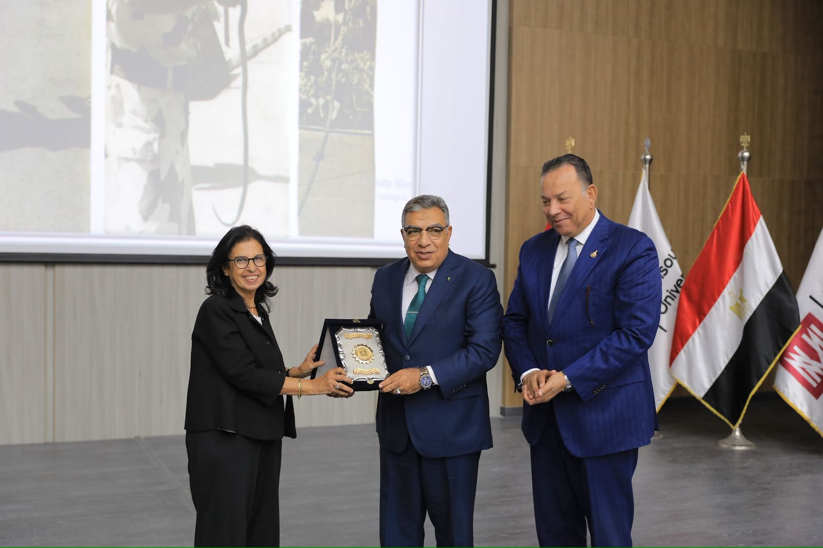 وقام الدكتور معوض الخولي رئيس جامعة المنصورة الجديدة، بإهداء درع جامعة المنصورة الجديدة إلى اللواء طارق مرزوق محافظ الدقهلية تقديرًا لدوره الوطني وجهوده المخلصة في دعم مسيرة التنمية بالمحافظة، كما قدّم درع شكر وتقدير إلى اللواء نبيل أبو النجا اعتزازًا بما قدّمه من محاضرة ثرية ومُلهمة غرست في نفوس الطلاب قيم الانتماء والفخر بالوطن وبأبطال أكتوبر العظام.