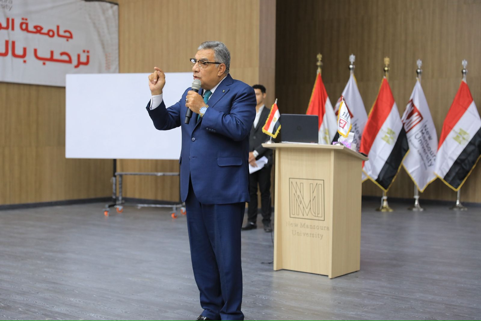 وأكد رئيس جامعة المنصورة الجديدة، أن الجامعة تواصل رسالتها في بناء الإنسان المصري القادر على حماية وطنه بالعلم والعمل، وفق رؤية الدولة المصرية لبناء جيل مستنير يضع مصلحة الوطن فوق كل اعتبار.