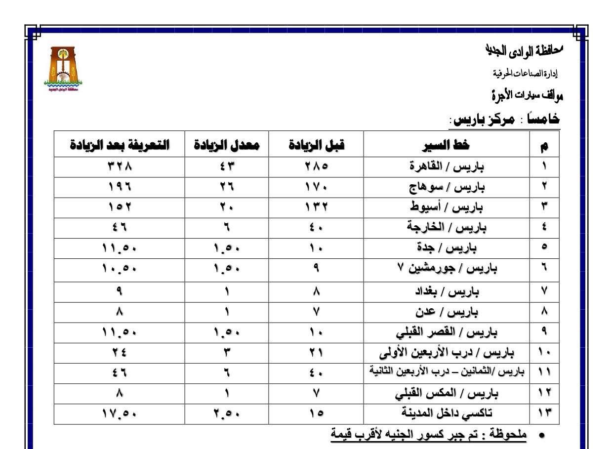 ومن المقرر أن تُعلن المحافظة عن التعريفة الجديدة بشكل رسمي في جميع المواقف، مع التشديد على ضرورة التزام السائقين بها، واتخاذ الإجراءات القانونية ضد أي مخالفات.
