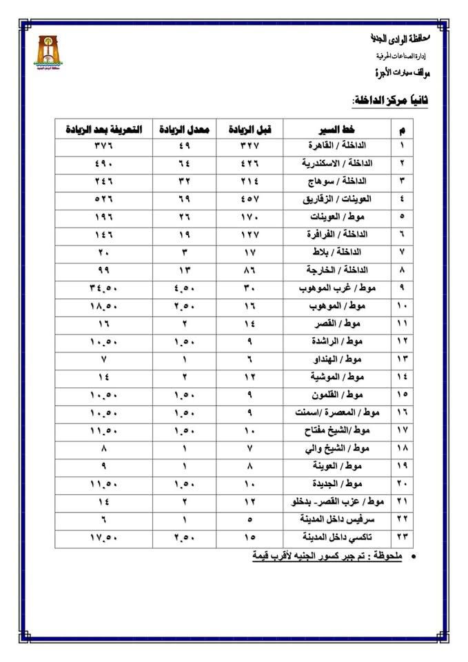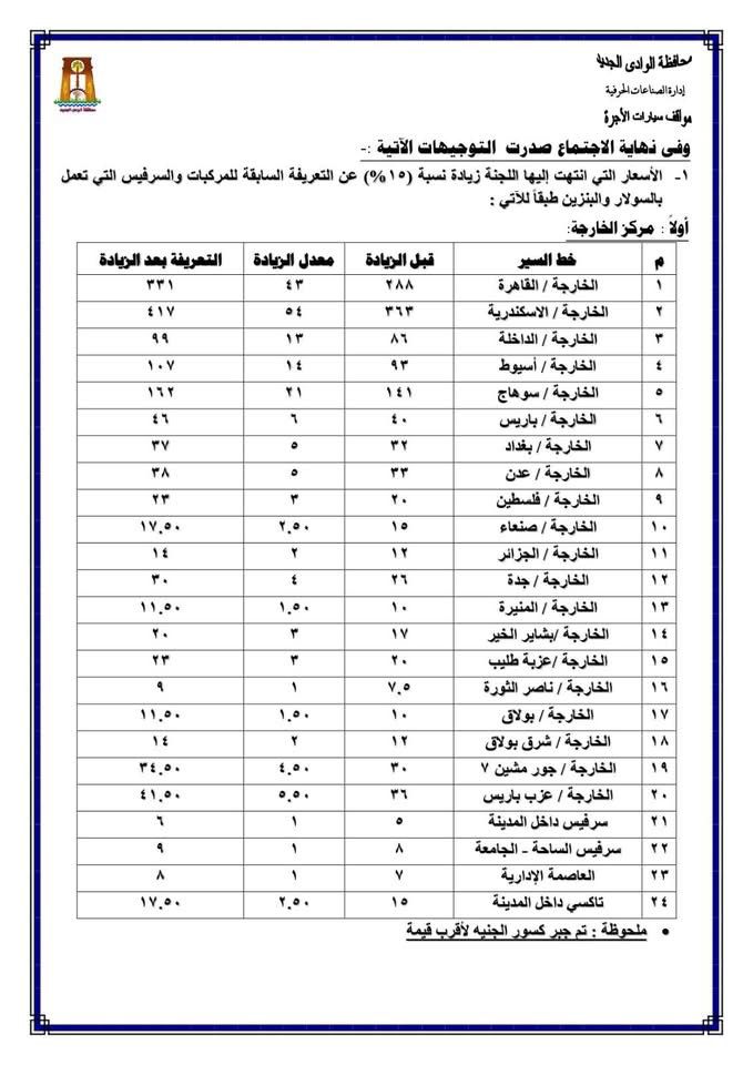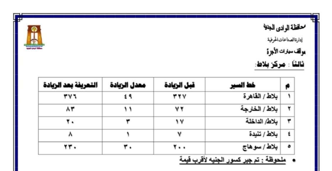 عقدت اللجنة العليا للمواقف بمحافظة الوادي الجديد، عقب قرار لجنة تسعير المواد البترولية الصادر صباح اليوم الجمعة، اجتماعًا برئاسة سيد محمود، سكرتير عام المحافظة، وبحضور أعضاء اللجنة، وذلك لتحديد تعريفة الأجرة الجديدة لخطوط السير الداخلية والخارجية.