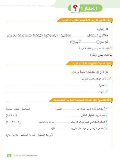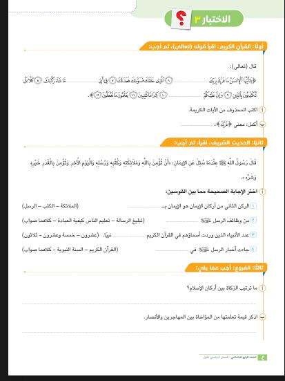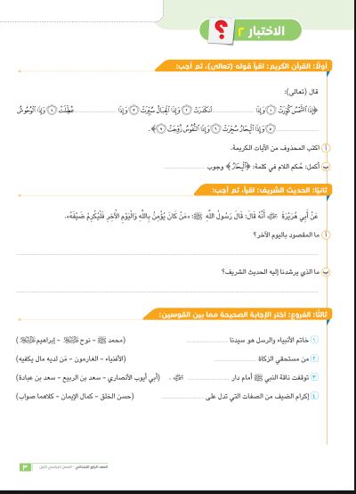 نماذج امتحانات دين للصف الرابع الابتدائي الترم الاول