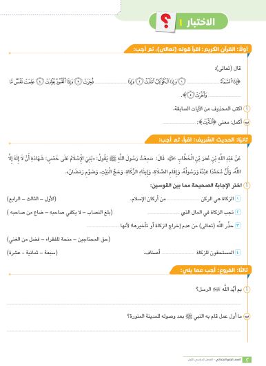 مواصفات أسئلة امتحانات مادة التربية الدينية للمرحلة الابتدائية لشهر أكتوبر
