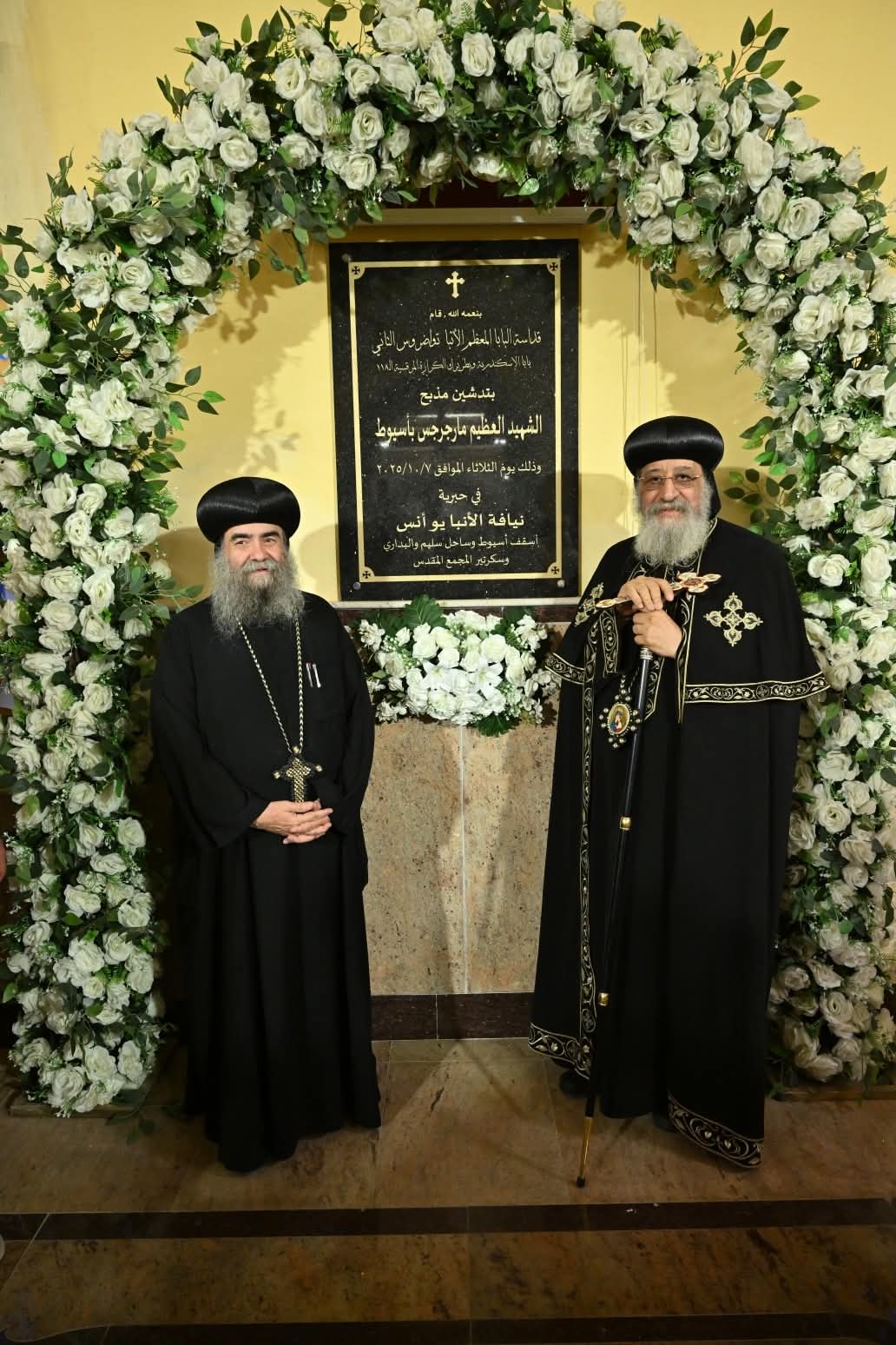 دشن قداسة البابا تواضروس الثاني صباح اليوم، مذبح وأيقونات كنيسة الشهيد مار جرجس بمدينة أسيوط، بعد هدمها وتوسعتها وإعادة بنائها، ليصل بذلك عدد الكنائس التي دشنها قداسته خلال جولته الرعوية بمحافظة أسيوط، إلى سبع كنائس.
