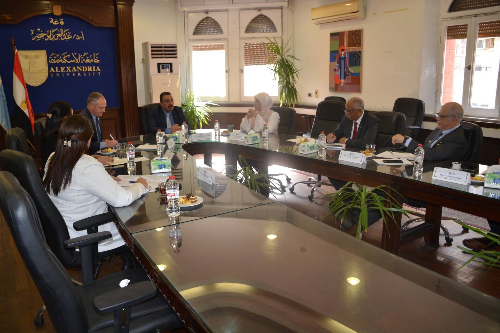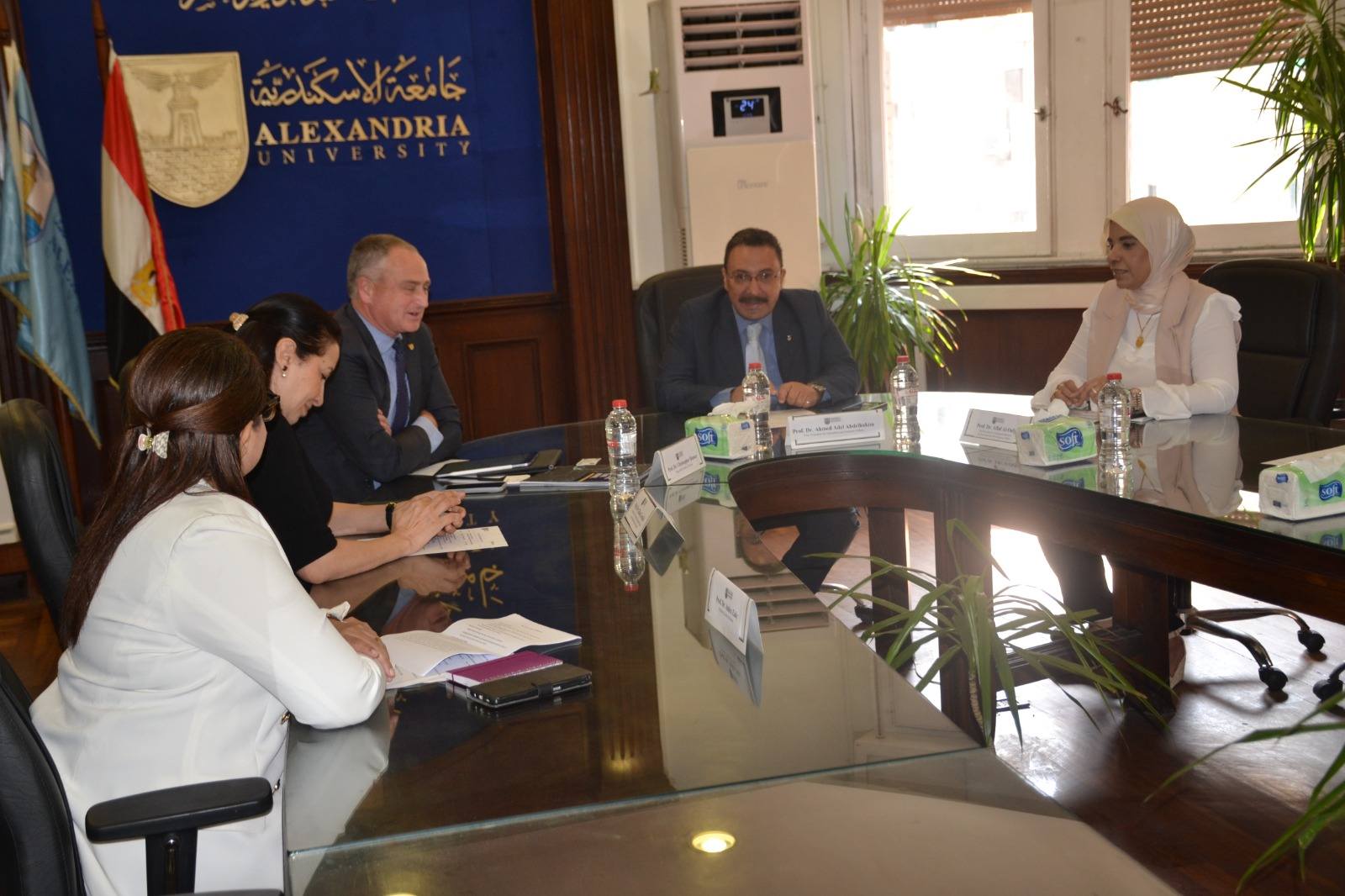 جاء اللقاء بحضور الدكتورة عفاف العوفي نائب رئيس جامعة الإسكندرية لشئون خدمة المجتمع وتنمية البيئة، والدكتور علي عبدالمحسن المشرف على مكتب العلاقات الدولية، والدكتورة جيهان جويفل مساعد رئيس جامعة الإسكندرية لشئون تدويل التعليم وفروع الجامعات الدولية، والدكتور سامح شحاتة مستشار مكتب العلاقات الدولية، والدكتور تامر السيد علي رئيس قسم علوم البحار بكلية العلوم جامعة الإسكندرية، والدكتورة أميرة زكي الأستاذ بكلية العلوم جامعة الإسكندرية.