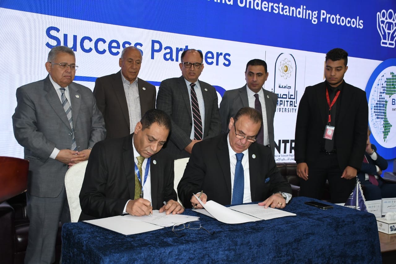 وقد وقع البروتوكول كل من الدكتور ممدوح عبدالعليم موافي، عميد كلية التجارة جامعة بدر، الدكتور جمال علي محمد يوسف، عميد كلية التجارة وإدارة الأعمال جامعة العاصمة.
