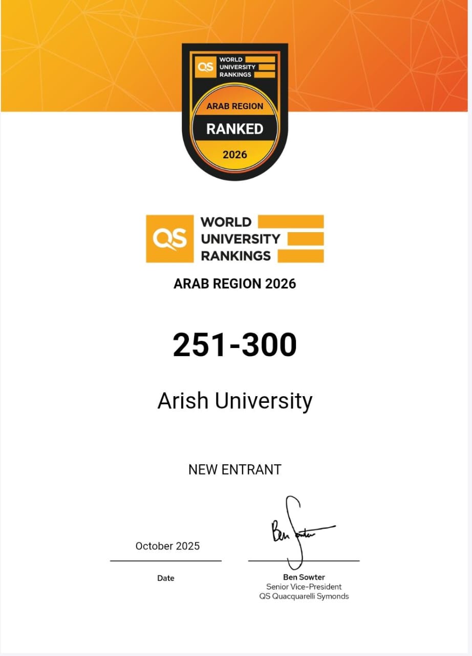 وبهذا الإنجاز، تُواصل جامعة العريش مسيرتها نحو تحقيق رؤيتها المستقبلية للوصول إلي التميز والريادة العلمية وأن تكون منارة علمية رائدة في شمال سيناء، تساهم في بناء الإنسان وتنمية المجتمع وتعزيز مكانة مصر العلمية في المحافل الإقليمية والدولية.