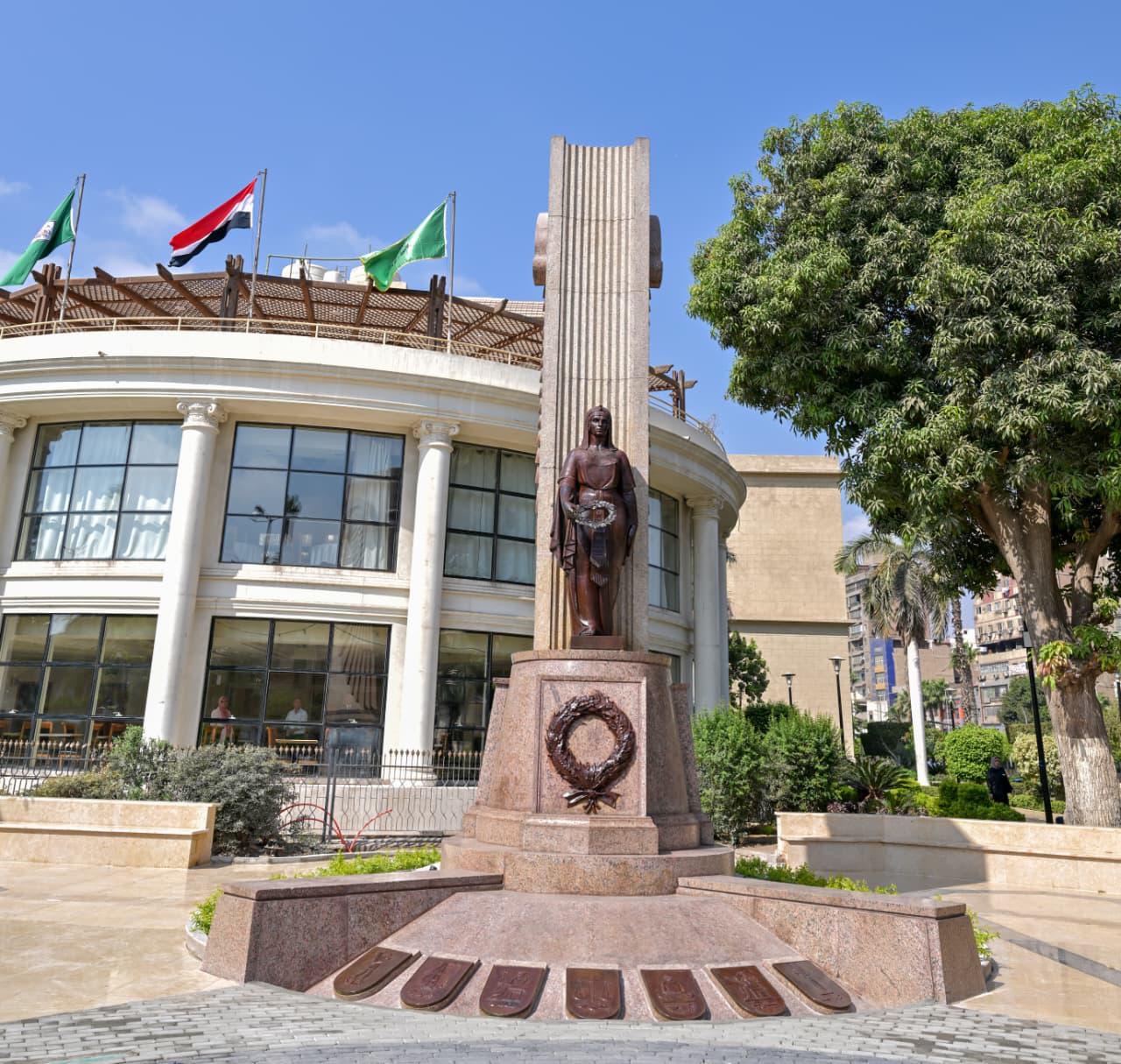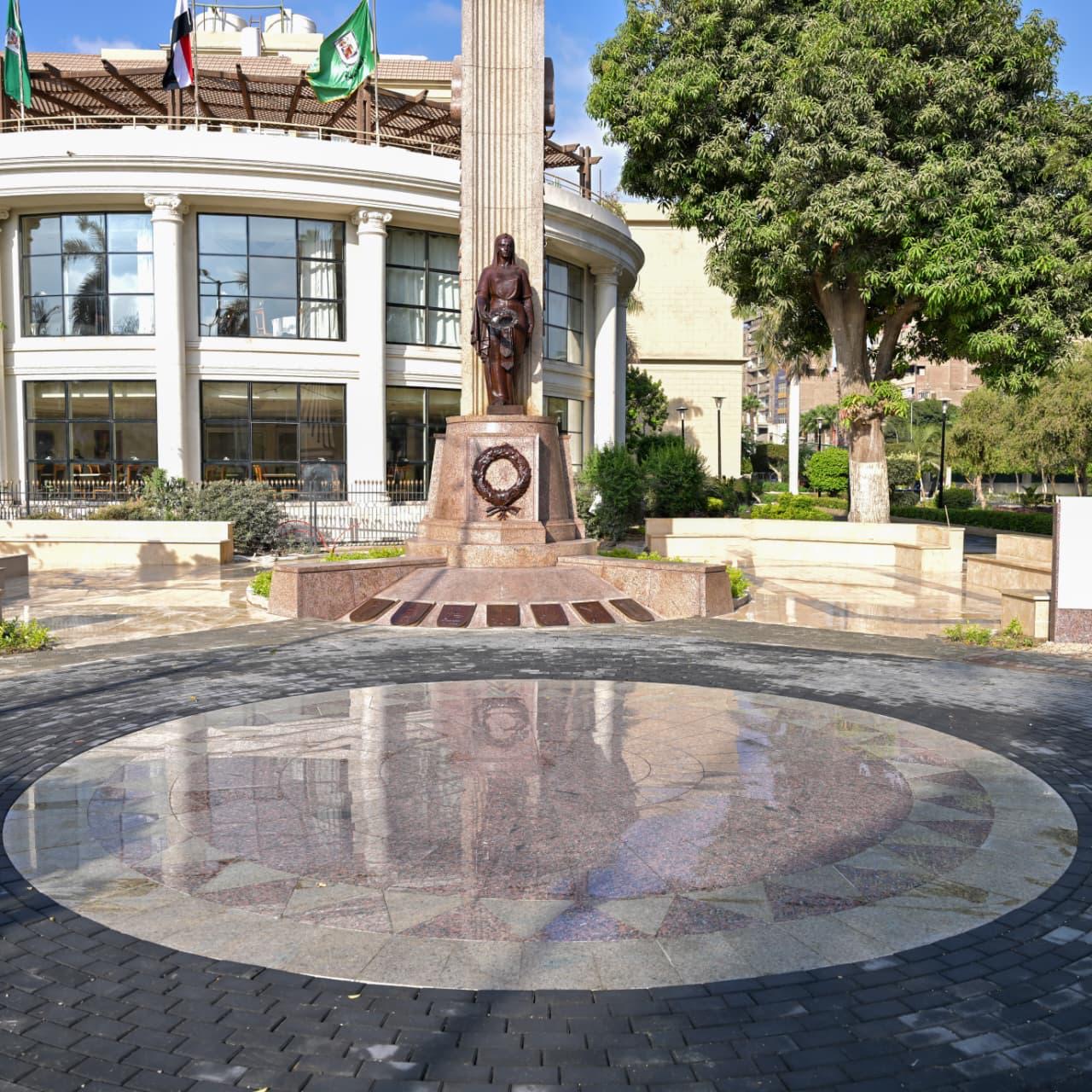 جدير بالذكر أن النصب التذكاري لشهداء جامعة القاهرة أُنشئ في منتصف القرن الماضي تخليدًا لذكرى طلاب الجامعة الذين قدّموا أرواحهم دفاعًا عن الوطن. والنصب مصنوع من البرونز على قاعدة جرانيتية، ويمثل مصر في صورة سيدة ترتدي تاجًا فرعونيًا وتمسك بإكليل من الزهور، فيما يمثل خلفها كتاب ضخم تحيط به أجنحة العنقاء وسجل الشهداء. وقد أبدع في تصميمه النحات الكبير فتحي محمود (1918 – 1982) الذي ترك بصمات واضحة في النحت المصري الحديث، ليكون شاهدًا فنيًا وتاريخيًا على بطولات أبناء الجامعة، وليجسد التلاحم العميق مع قضايا الوطن.