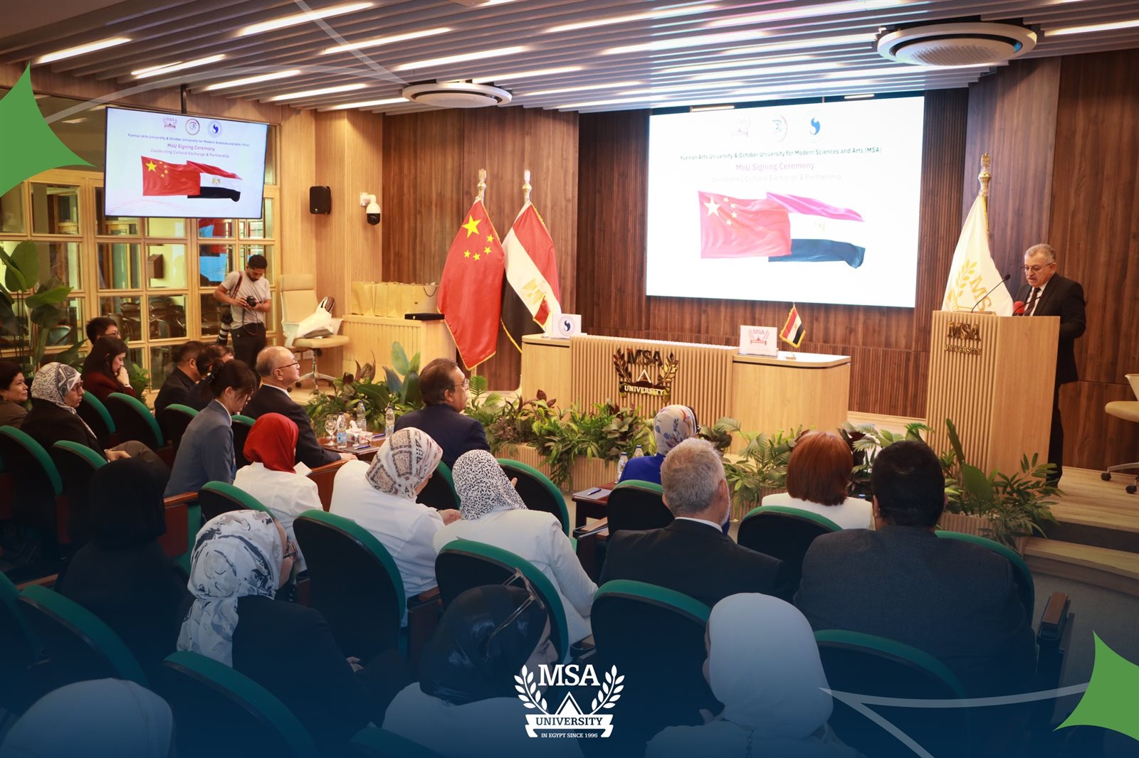 وقع الدكتور نادر البكل، رئيس جامعة أكتوبر للعلوم الحديثة والآداب MSA، مذكرة تفاهم رائدة مع لي جيانيو، رئيس مجلس الجامعة ولجنة الشؤون الأكاديمية بجامعة يونان للفنون، بحضور الدكتور طارق صالح، عميد كلية الفنون والتصميم، ووفد من جامعة يونان الصينية وأعضاء هيئة التدريس بالكلية.