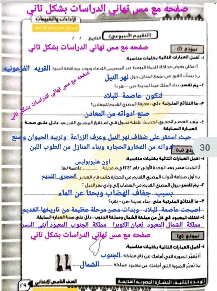 ويمكن الحصول على حل تقييمات الأسبوع الثامن بمادة الدراسات الإجتماعية للصف الخامس الابتدائي، من خلال مطالعة الصور التالية:
