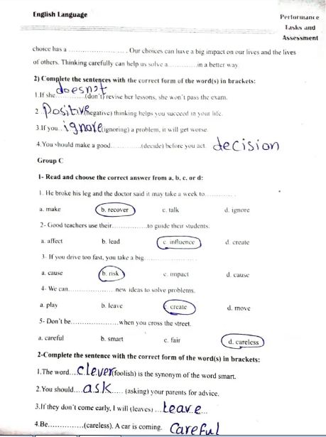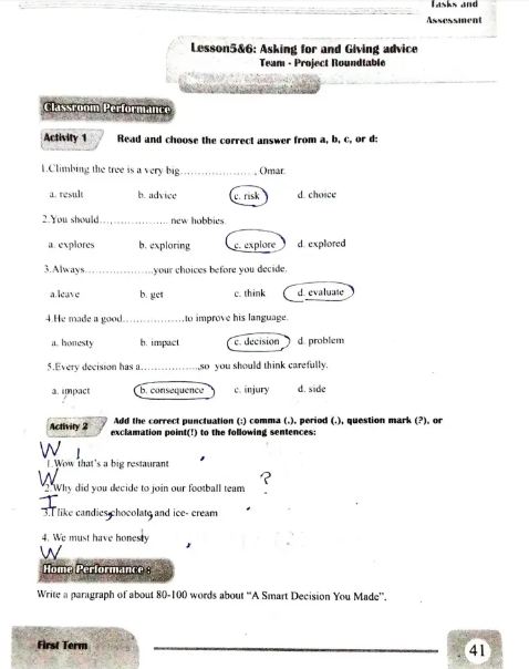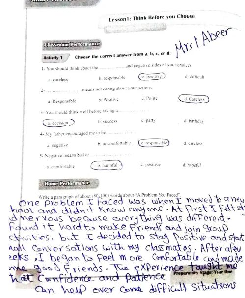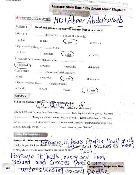 يشمل حل الأداء الصفي إنجليزي أولى إعدادي الوحدة الرابعة ترم أول 2026 الأسئلة والإجابات النموذجية، ومن بينها كان الآتي: