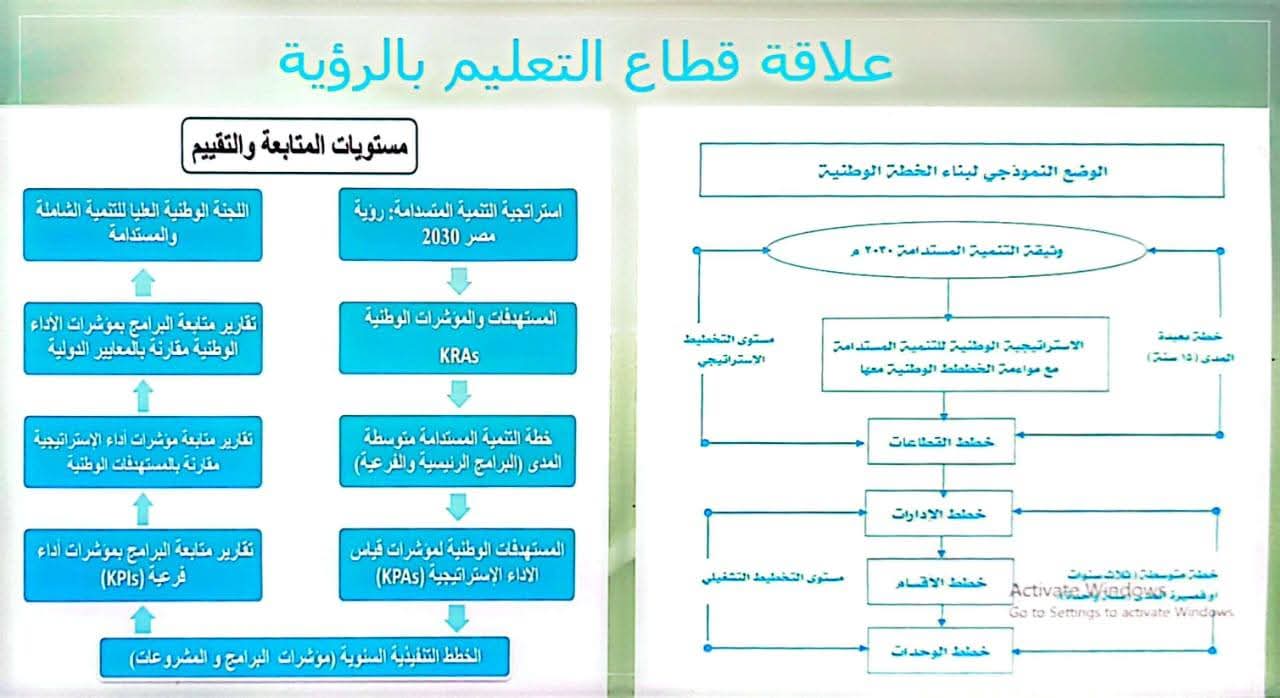 كما وجّه الشكر لجميع الحاضرين من قيادات المديرية والإدارات التعليمية، ومسؤولي التدريب، وأكد وكيل الوزارة  على أهمية الاطلاع الدائم على رؤية مصر 2030، والعمل من خلالها في جميع جوانب العملية التعليمية، مشددًا على أن تحقيق التنمية المستدامة يبدأ من داخل المدارس، من خلال معلمين واعين، وطلاب يمتلكون المهارات والقيم والمعرفة.