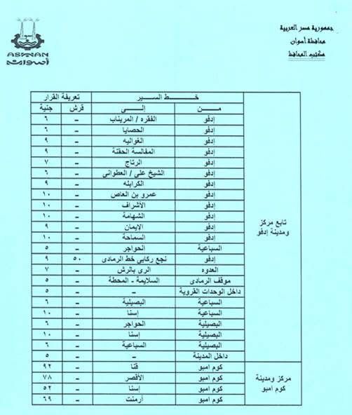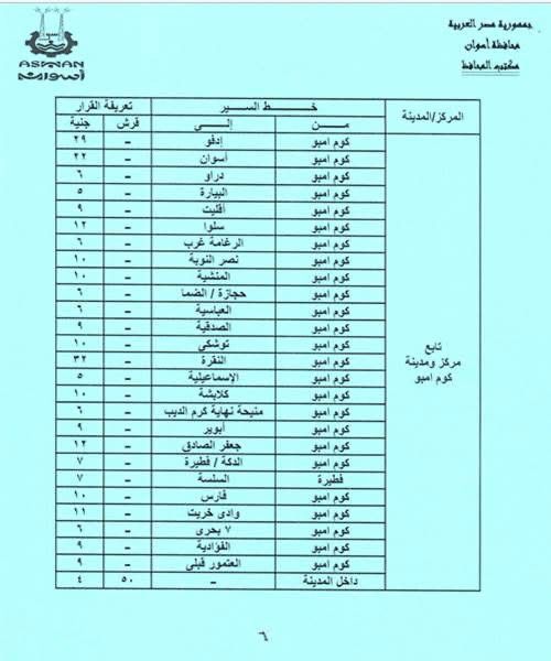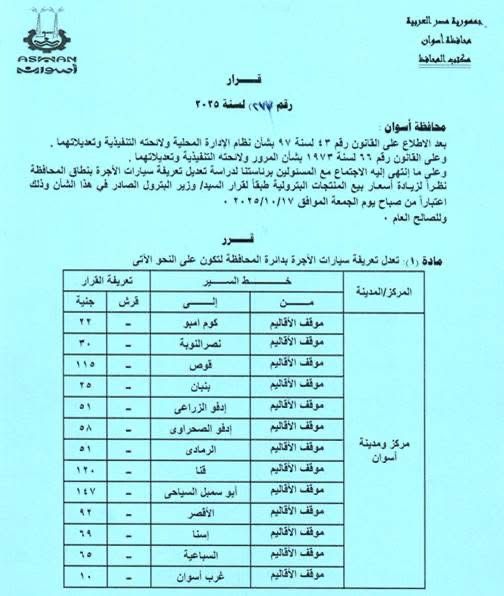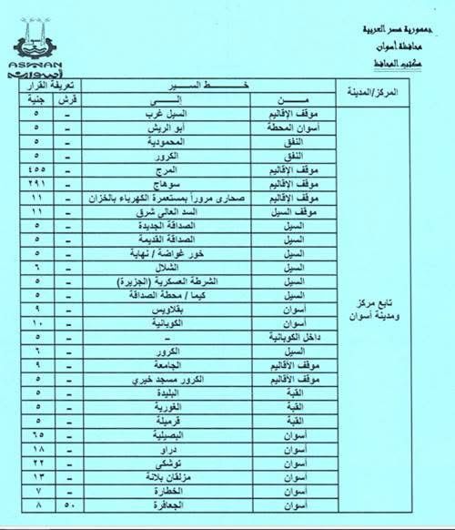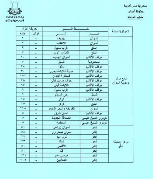 قرر اللواء دكتور إسماعيل كمال محافظ أسوان، اليوم الجمعة، تعديل تعريفة الأجرة للمواصلات الداخلية والخارجية وسيارات نقل الركاب السرفيس والتاكسي بالعداد ، فضلاً عن مركبات التوك توك داخل المحافظة وبين المراكز، عقب صدور قرار لجنة التسعير التلقائي للمنتجات البترولية بزيادة أسعار الوقود.