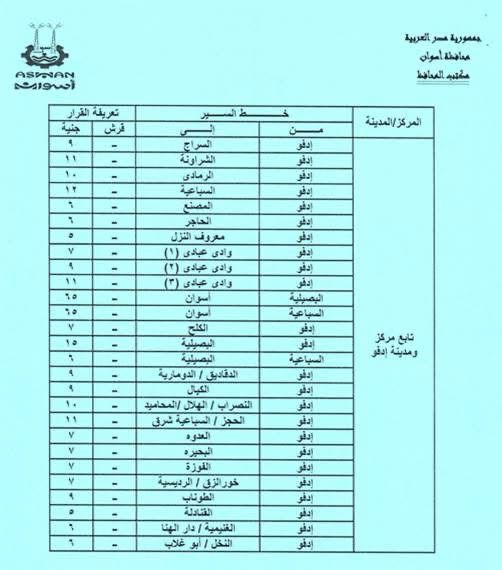 وأكد الدكتور إسماعيل كمال، أنه تم وضع مجموعة من المعايير لتطبيق التعريفة الجديدة تهدف إلى مراعاة كثافة الخط داخل حدود المحافظة ، مع مراعاة أسعار قطع الغيار والزيوت ، فضلاً عن جرد كميات الوقود والسولار المتواجدة في محطات الوقود بمعرفة مديرية التموين لضمان بيع الكميات المتاحة بالسعر السابق قبل الزيادة ، وبالتوازى تم التنسيق مع المحافظات المجاورة لتحديد التعريفة الجديدة من وإلى أسوان ، وتم طباعة التعريفة على لوحات توضيحية بكافة المواقف بمختلف المراكز والمدن لتعريف المواطنين بها على الوجه الأكمل.