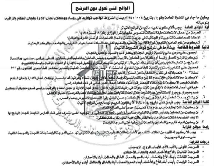 - أن يكون شاغلًا لوظيفة مدير عام إدارة تعليمية حرصًا على الصالح العام