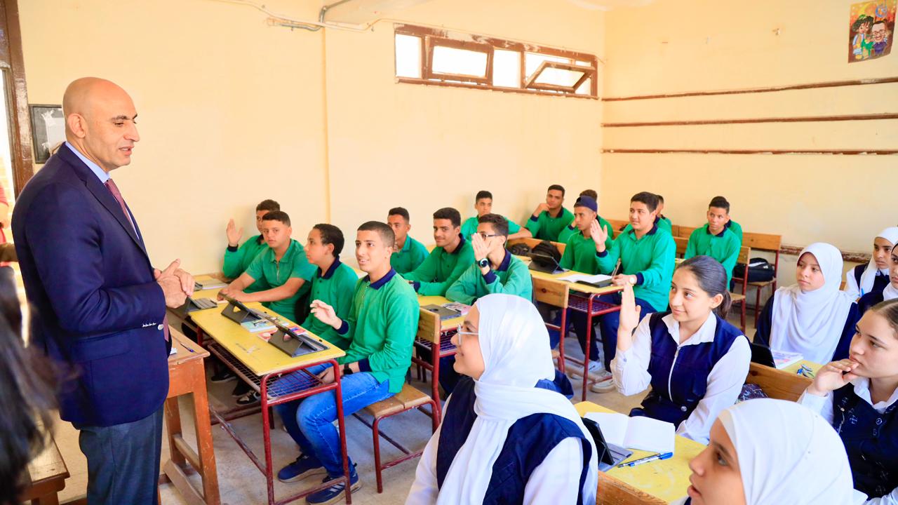 وتفقد الوزير عددًا من الفصول الدراسية بالمرحلتين الابتدائية والإعدادية، واطلع على كراسات التقييمات للطلاب، ومستوى تحصيلهم الدراسي في مهارات القراءة والكتابة.