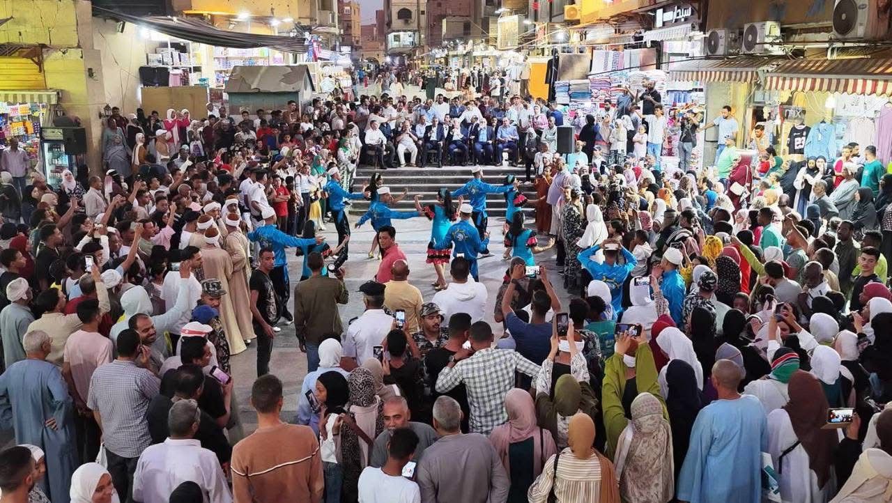 وهى أسوان والأقصر وملوى وسوهاج وكفر الشيخ وبورسعيد والعريش والأنفوشى ، حيث تم تقديم عروض فنية متنوعة ورقصات تراثية تعبر عن الهوية الثقافية لكل محافظة مما لاقى تفاعل جماهيرى من الأهالى والأفواج السياحية والزوار المصريين والأجانب الذين احتشدوا لمتابعة الفعاليات فى السوق السياحى .