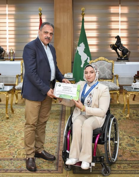 ومن جانبها أعربت لاعبة رفع الأثقال البارالمبي عن سعادتها لإستقبال المحافظ لها اليوم وتكريمها بإهدائها شعار المحافظة وشهاده تقدير ليمثل لها قوة دفع حقيقية لمواصلة الانتصارات والفوز بالميداليات الذهبية ورفع اسم مصر عالياً.