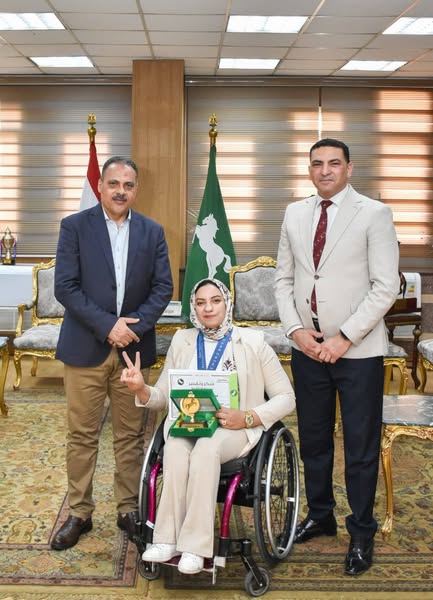 كرم المهندس حازم الأشموني محافظ الشرقية البطلة رحاب أحمد رضوان ابنه قرية الحواط التابعة لرئاسة مركز ومدينة منيا القمح بمنحها شعار المحافظة وشهادة تقدير وذلك لحصولها على الميدالية الذهبية في بطولة العالم لرفع الأثقال البارالمبي وزن 61 كجم سيدات والتي اقيمت في الفترة من 9 حتي 18 اكتوبر الجاري بالعاصمة الإدارية الجديدة وذلك بعد أن نجحت في رفع وزن 131 كجم متمنياً لها مواصلة التفوق الرياضي ورفع اسم مصر عاليا في جميع المحافل المحلية والإقليمية والدولية.
