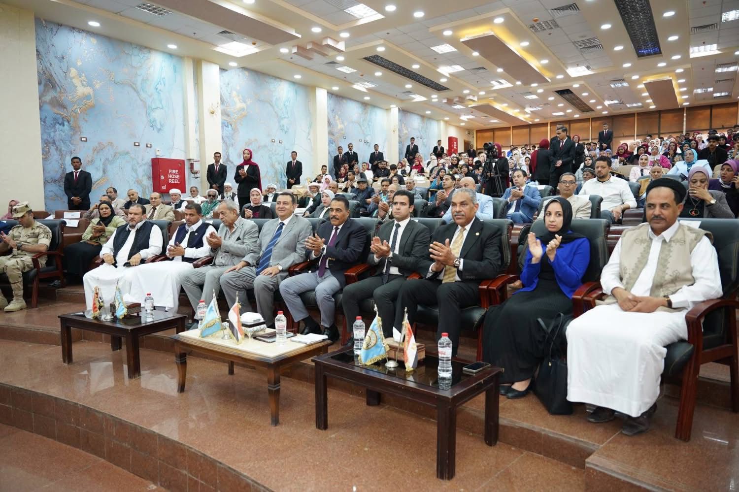 والسادة وعمداء وأساتذة جامعة مطروح ولفيف من القيادات الشعبية  والتنفيذية والدينية من رجال الدين الاسلامى والمسيحي بالمحافظة وعددا من طلاب جامعة مطروح وأسر شهداء والمشاركين من أبناء مطروح بحرب أكتوبر المجيدة .