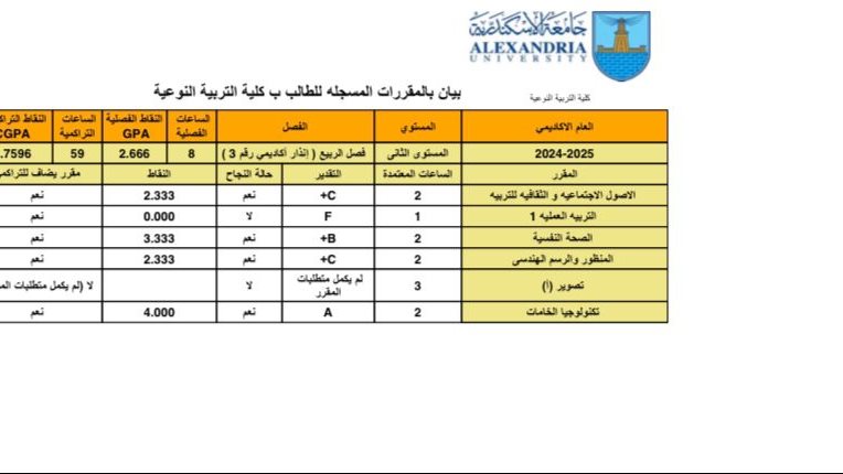 وأكدت الطالبة بالفرقة الثانية بكلية التربية النوعية جامعة الإسكندرية، أنها قامت بالفعل بإعادة التسجيل في منتصف الفصل الدراسي الثاني من العام الماضي، وسددت المصروفات الدراسية المقررة، وانتظمت في الدراسة، كما دخلت امتحانات المواد المسجلة، وظهرت نتائجها بالنجاح، وهو ما تعتبره دليلًا قاطعًا على قانونية موقفها الأكاديمي واستمرار قيدها بالكلية.