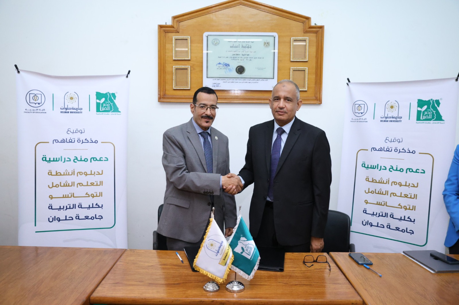 وقّعت مؤسسة مصر الخير، عضو التحالف الوطني للعمل الأهلي التنموي، بروتوكول تعاون مع كلية التربية جامعة حلوان، لتمويل ودعم منح دراسية لعدد ٤٠ طالبًا وطالبة للحصول على دبلوم مهني في تخصص “أنشطة التعلم الشامل – التوكاتسو”، بالإضافة إلى دعم العديد من المجالات التربوية والتعليمية، مثل كتابة المقترحات التمويلية، وتنفيذ المشروعات الدولية، والمنح الدراسية، والنشر العلمي والأكاديمي في الموضوعات ذات الأهمية المشتركة.