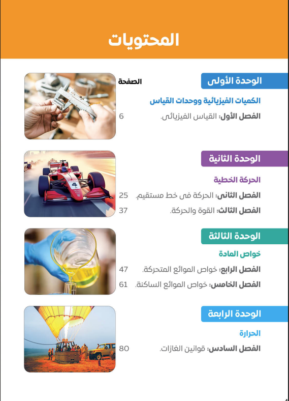 يتكون منهج الفيزياء للصف الثاني الثانوي 2026 من أربع وحدات رئيسية تشمل أهم المفاهيم الفيزيائية الأساسية للمرحلة الثانوية: