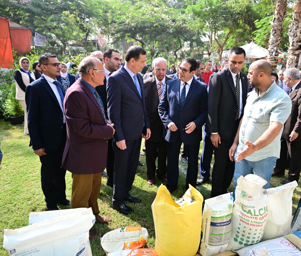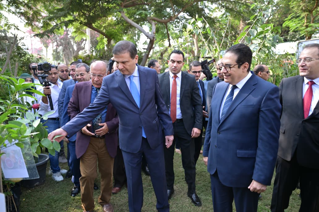 وزير الزراعة ورئيس جامعة القاهرة يتفقدان أجنحة المعرض لأحدث المشروعات والابتكارات الزراعية والبساتين التجريبية بالكلية