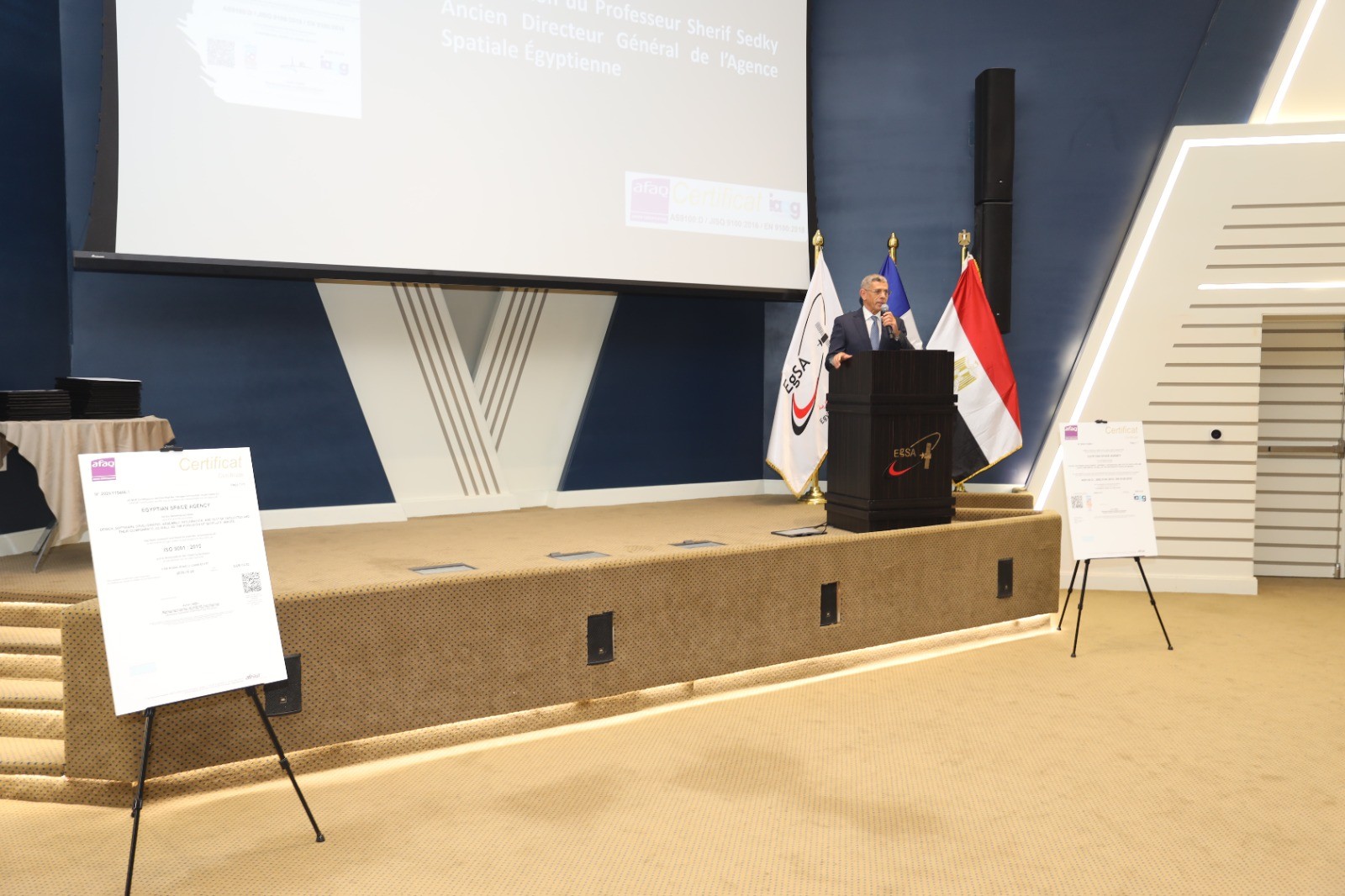 وقد شهد الحفل حضورًا رفيعا تقدمه الدكتور مهندس ماجد إسماعيل الرئيس التنفيذي لوكالة الفضاء المصرية، وإريك شوفالييه السفير الفرنسي بالقاهرة، والدكتور شريف صدقي الرئيس التنفيذي السابق لوكالة الفضاء المصرية، والدكتور تيديان أوتارا رئيس مجلس الفضاء الإفريقي، واللواء شريف الرشيدي رئيس قطاع شئون الصناعة بوزارة الصناعة، إلى جانب ممثل شركة AFNOR الفرنسية المانحة لشهادات الاعتماد.